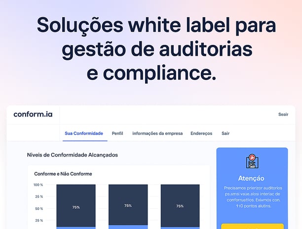 Simplifique a gestão de compliance no setor público com a Conform.ia – a plataforma white label que se adapta às necessidades exclusivas da sua organização.